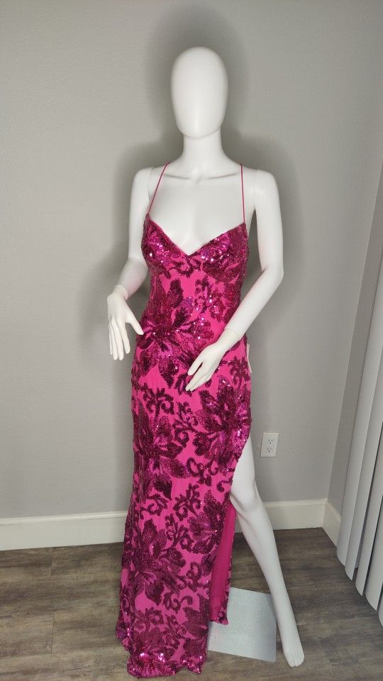 Pink Sequin Prom Dress Ball Gown, Size 15 - 16