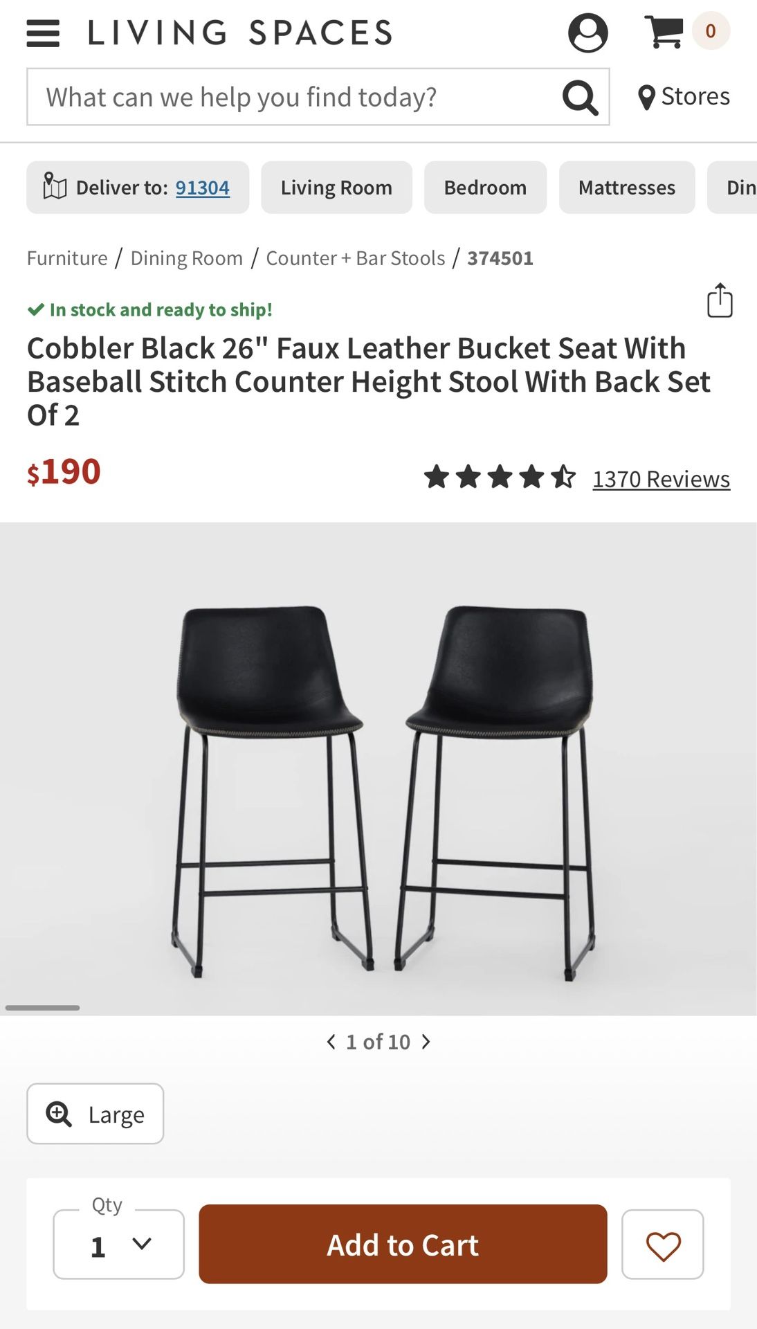 Black Leather Bar Stools 26” Height *like New*