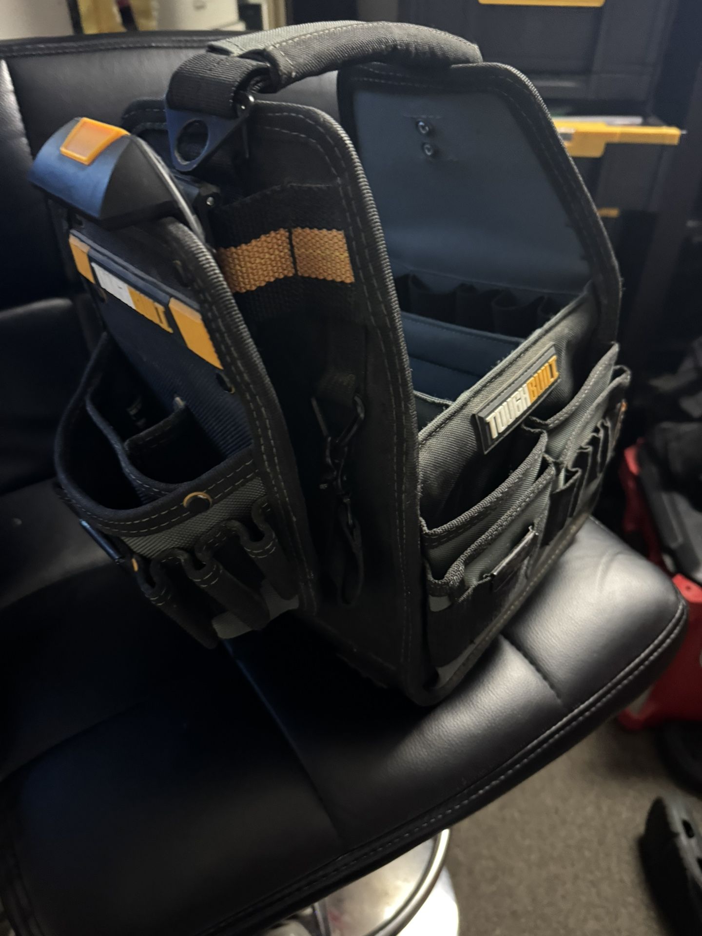 Genuine ToughBuilt 8” Tool Tote Pouch w/ ClipTech system (model TB-CT-180-8). • 31 pockets & loops • Rigid structure – stands open • Rivet-reinforced • Includes ClipTech hubs • Excellent for electricians, service techs, and contractors Retail is $149 new. This one is solid and ready to work. Local pickup. Cash/Zelle.