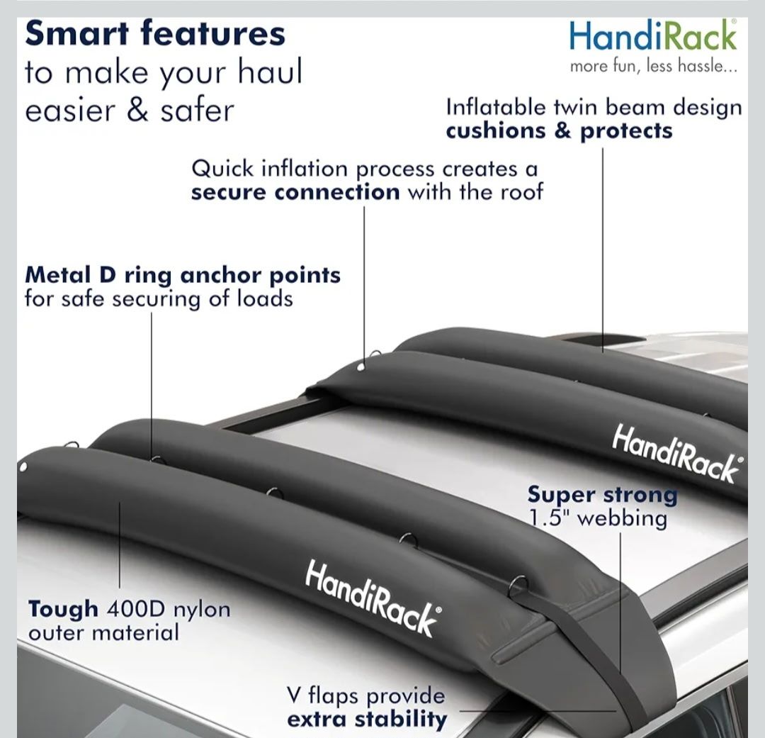 HANDIRACK Universal Inflatable Soft Roof Rack Bars (Pair);Carrier for Kayaks, Canoes, Surfboards and SUPs; Fits Cars and SUVs (ONLY THE Soft Roof Rack Bars (Pair);) $90 OPEN BOX