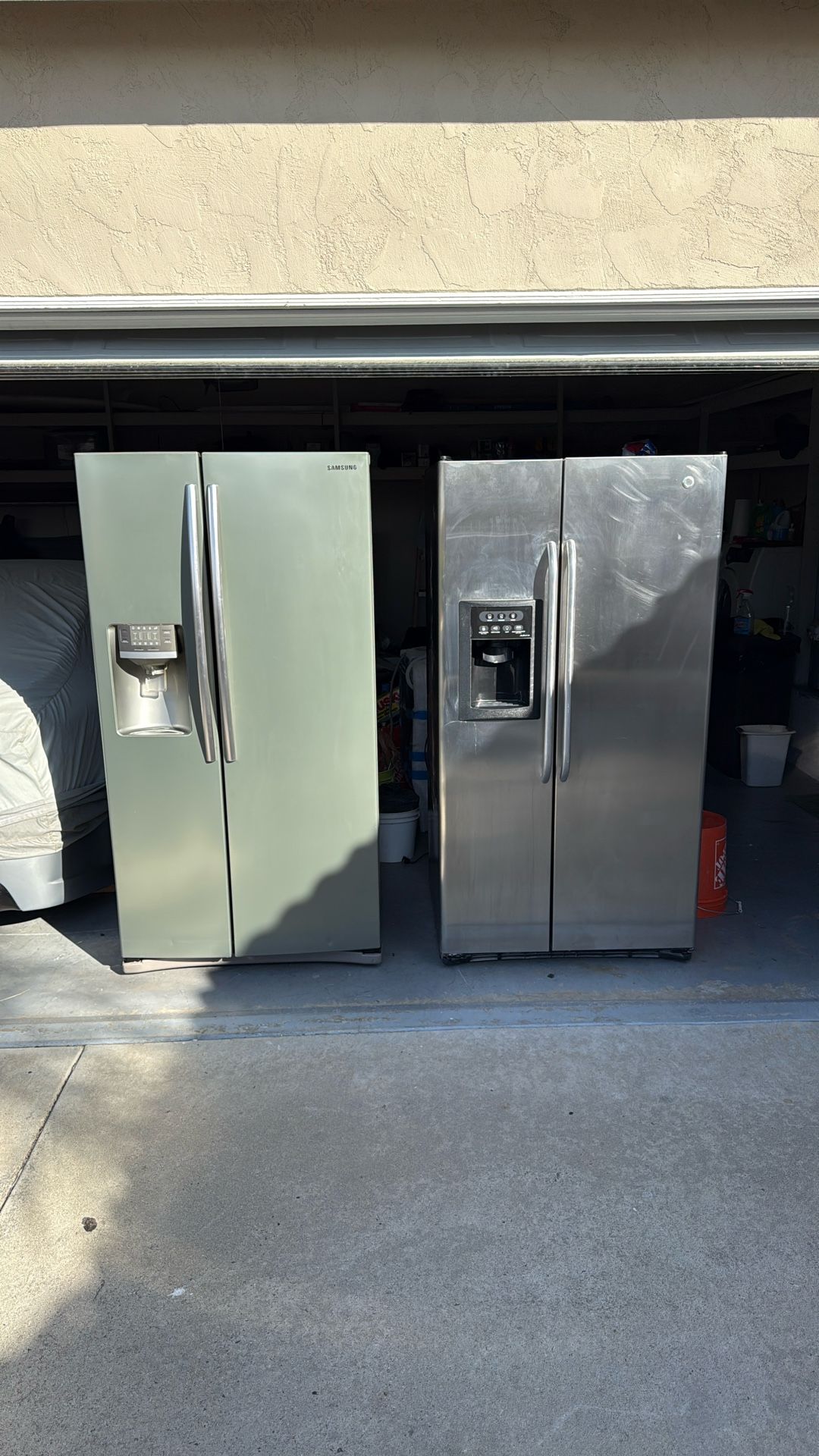 One Samsung refrigerator(like new), one GE refrigerator(used), one Profile stove(like new), one Profile dishwasher(used), & (not pictured)GE wall mount microwave (used). Samsung refrigerator & Profile stove(gas) is in good condition, the GE refrigerator is in good condition, and the dishwasher works and is used. Microbe in good condition also. $800 for All five appliances. Getting rid of them as a package.