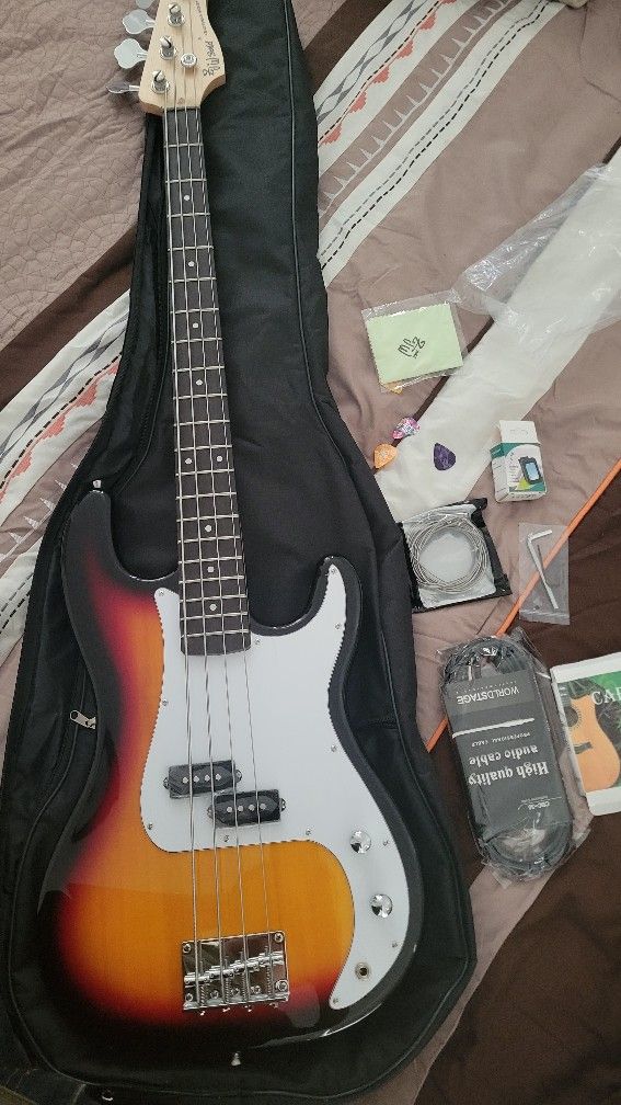 Brand new! Hasn't been played It comes with a bad and gadgets for the guitar like picks, capo, audio cable, strings and a tuning device