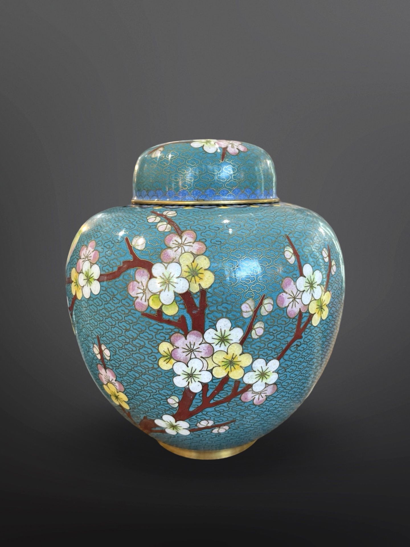 Chinese Brass Cloisonne Enamel Jar With Lid Vase Urn Floral