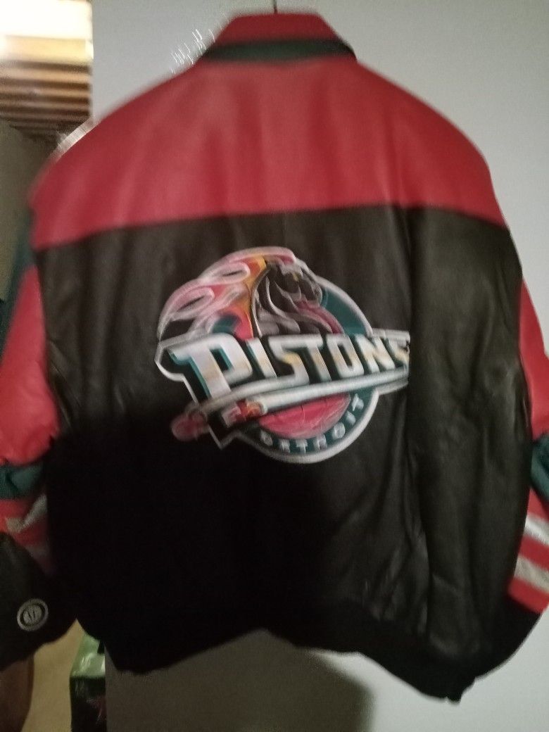 Store shutdown cashing out MBA Detroit Piston leather men's jackets made by jeff hamilton sizes available. L. XL. 2XL. 3XL. Only left Store price $ 349. Cashing out $ 180. Limited jackets