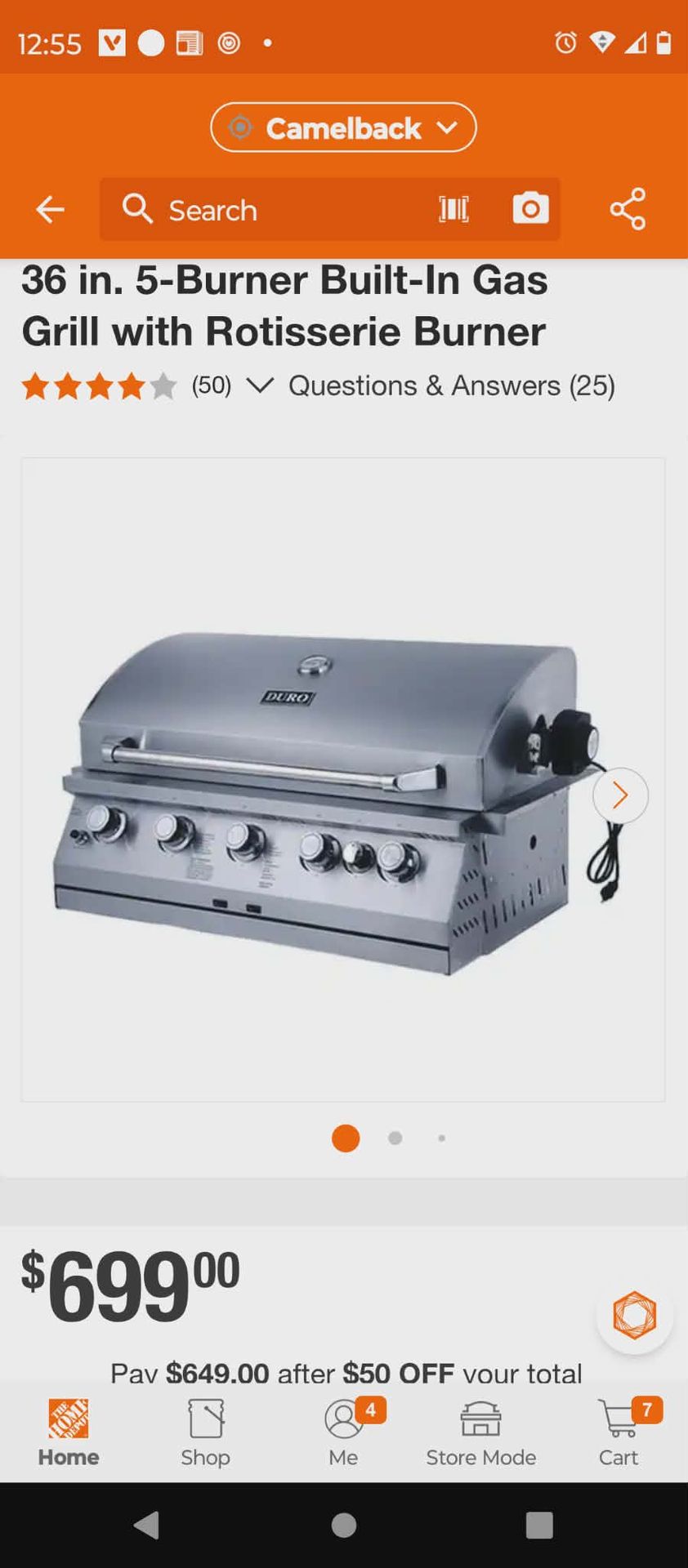 New Duro 36" stainless steel drop -in gas grill 6 burner with rotisserie burner