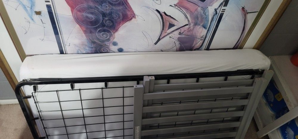 We got the crib for $50, but my son never slept or wanted to be in it. Only thing wrong with it is the top part. The paint came off. You can paint over it. You can have the painting. We are gonna donate it to goodwill
