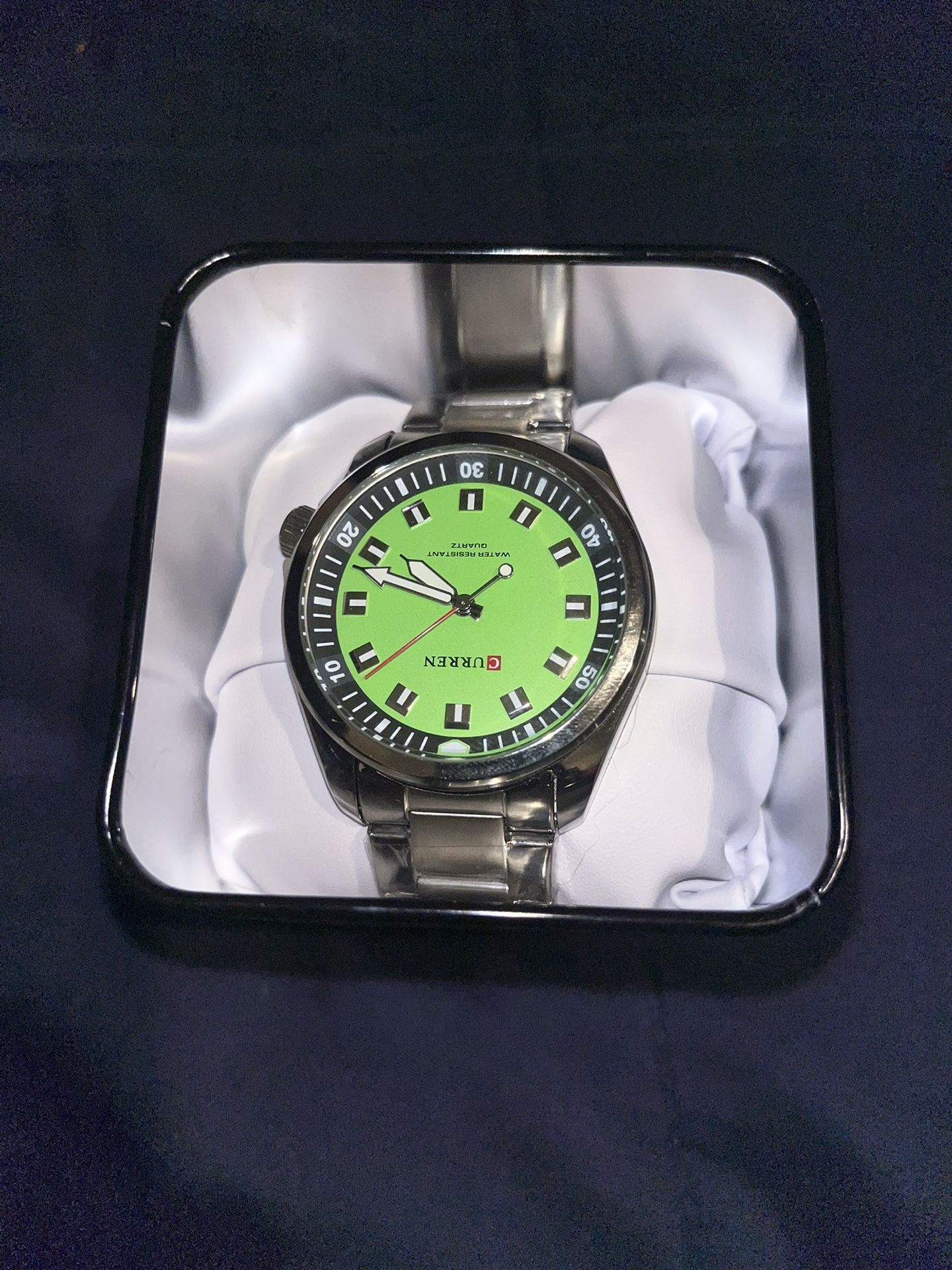 (Curren Watch )Circ Lime Green Face W Sil Link Bbd Curren
