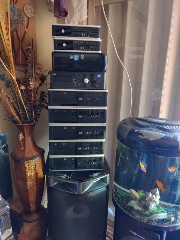 I have Hp desktops fully loaded and ready to work, excellent for offices or home use. They have intel Core 2 Processors, 3.0 Ghz, 4 Gb of ram, 250 GB hard drives, monitor, mouse and keyboard . 120 each setup. They have Windows 10 Professional, Office for life, Kodi installed to watch it all.