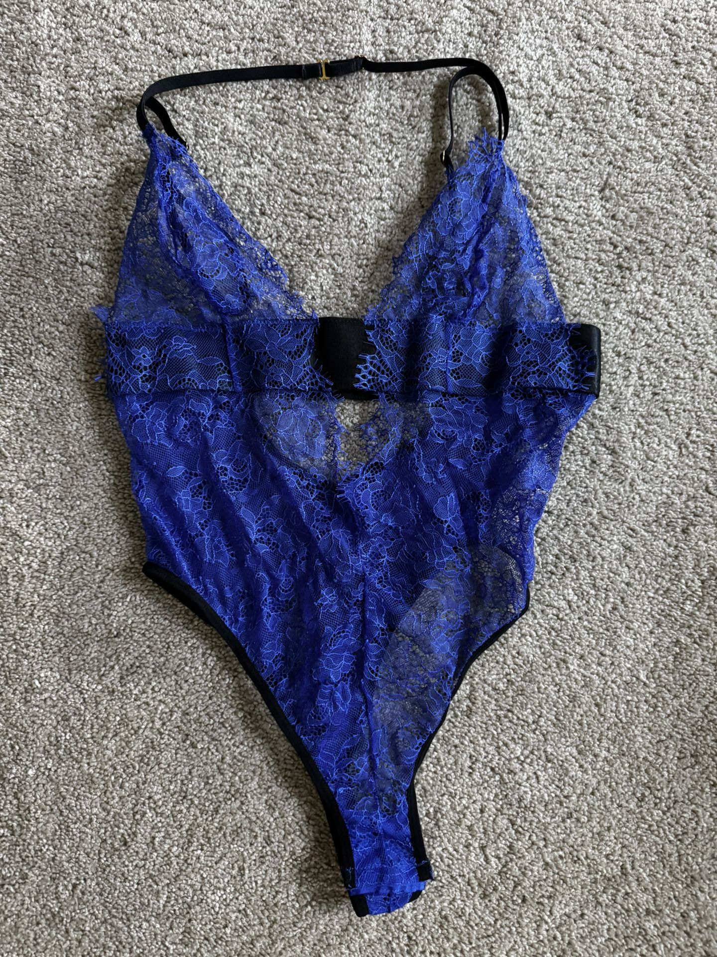 Fashion Nova All Over You Lace royal blue Teddy. I’ve only worn this bodysuit out once. Teddy is completely see through, I had to wear pasties to wear it out. Bodysuit has a deep V-neckline, mesh detail in the back and a black strap detail that goes across the top back. Bodysuit clasps at bottom and has a hook and eye closure in the back. 90% polyamide, 10% elastane Size: S/M Brand: fashion nova Reason for Selling: do not wear anymore I provide numerous pictures to show the condition of the item and try to describe items as accurately as possible so please ensure you view all pictures and read the entire description. Feel free to message with questions!
