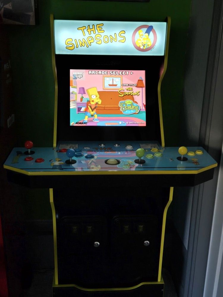 Arcade1Up Simpsons cabinet with riser, stool and tin sign. Simpsons and Simpsons Bowling. Also added Ghouls n Ghost apk. TMNT plus apk. Contra apk.