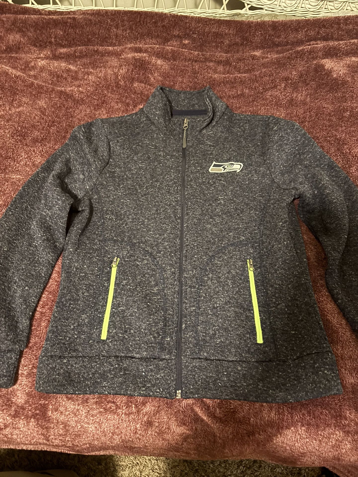 NFL Woman’s very warm Seahawks jacket, size medium w/2 pockets & high neck collar. Like new. $30.00.