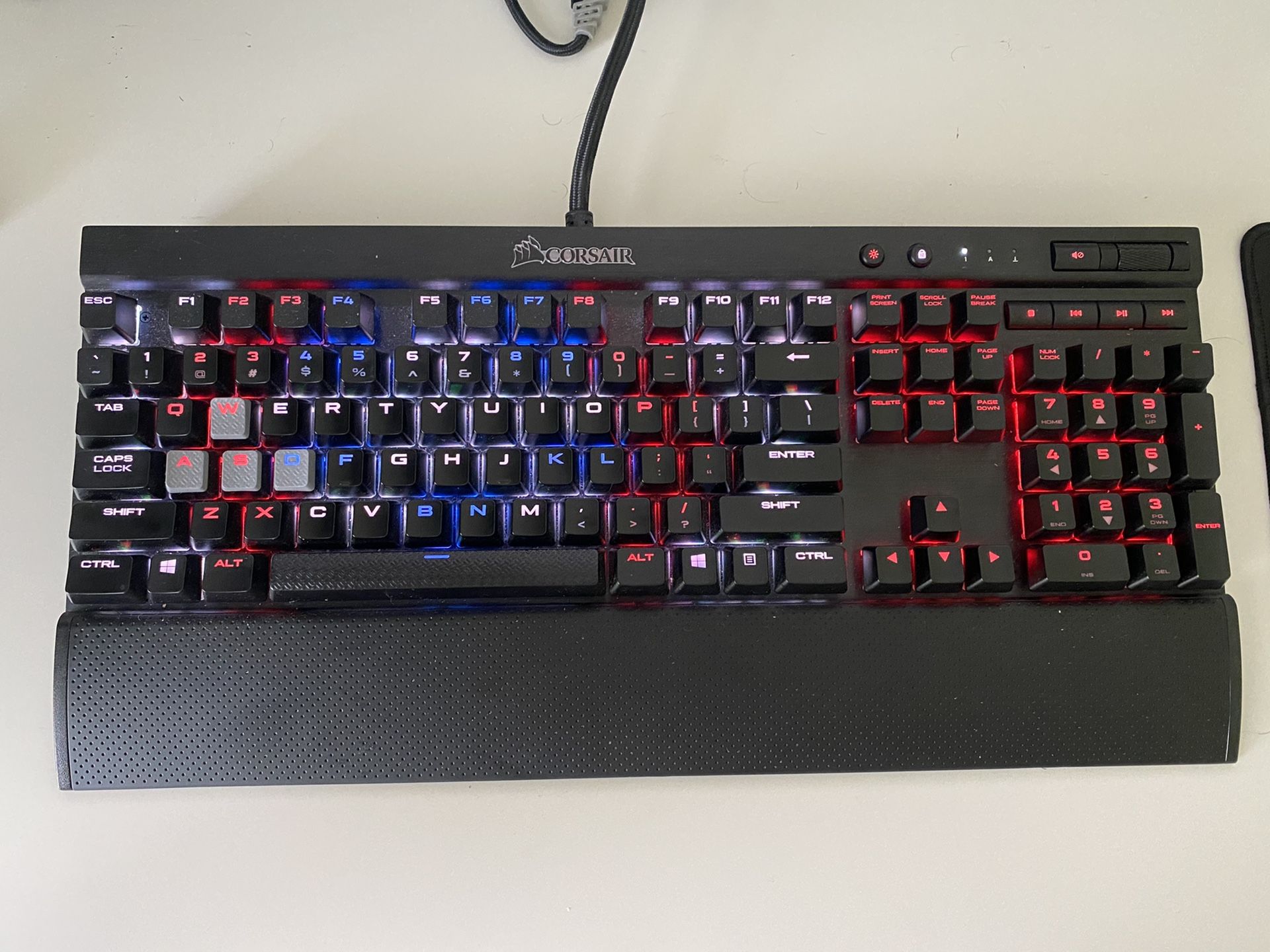In great condition, all keys and backlighting work perfectly. This is a mechanical keyboard with cherry switches.