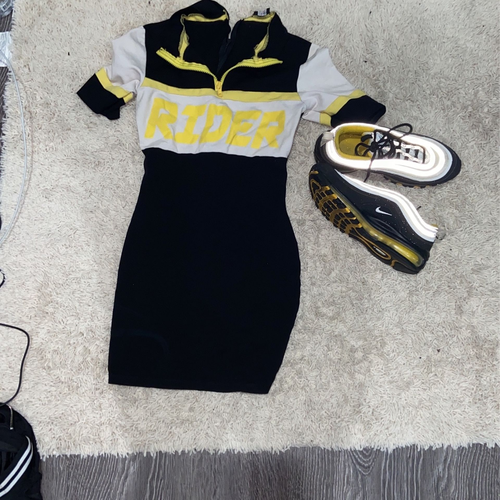 Fashion Nova Blk Whit Yellow Dress & 97 Blk Yellow Shoes