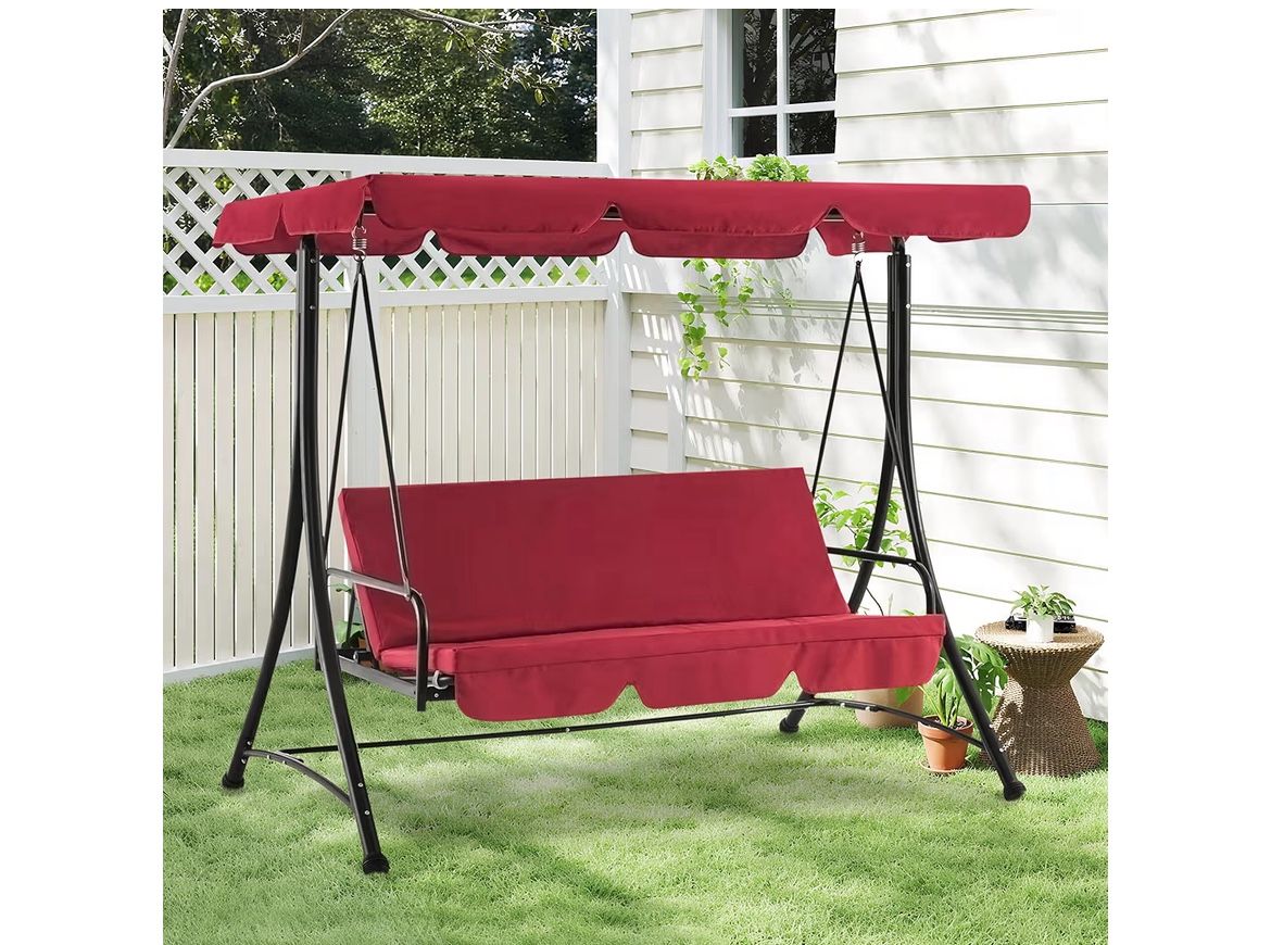 MCombo 3 Seat Patio Swings with Weather Resistant Steel Frame Adjustable Canopy, Reclining Outdoor Porch Swing with Cushion for Backyard, Porch Lawn, Poolside, Balcony 4089 (Burgundy)
