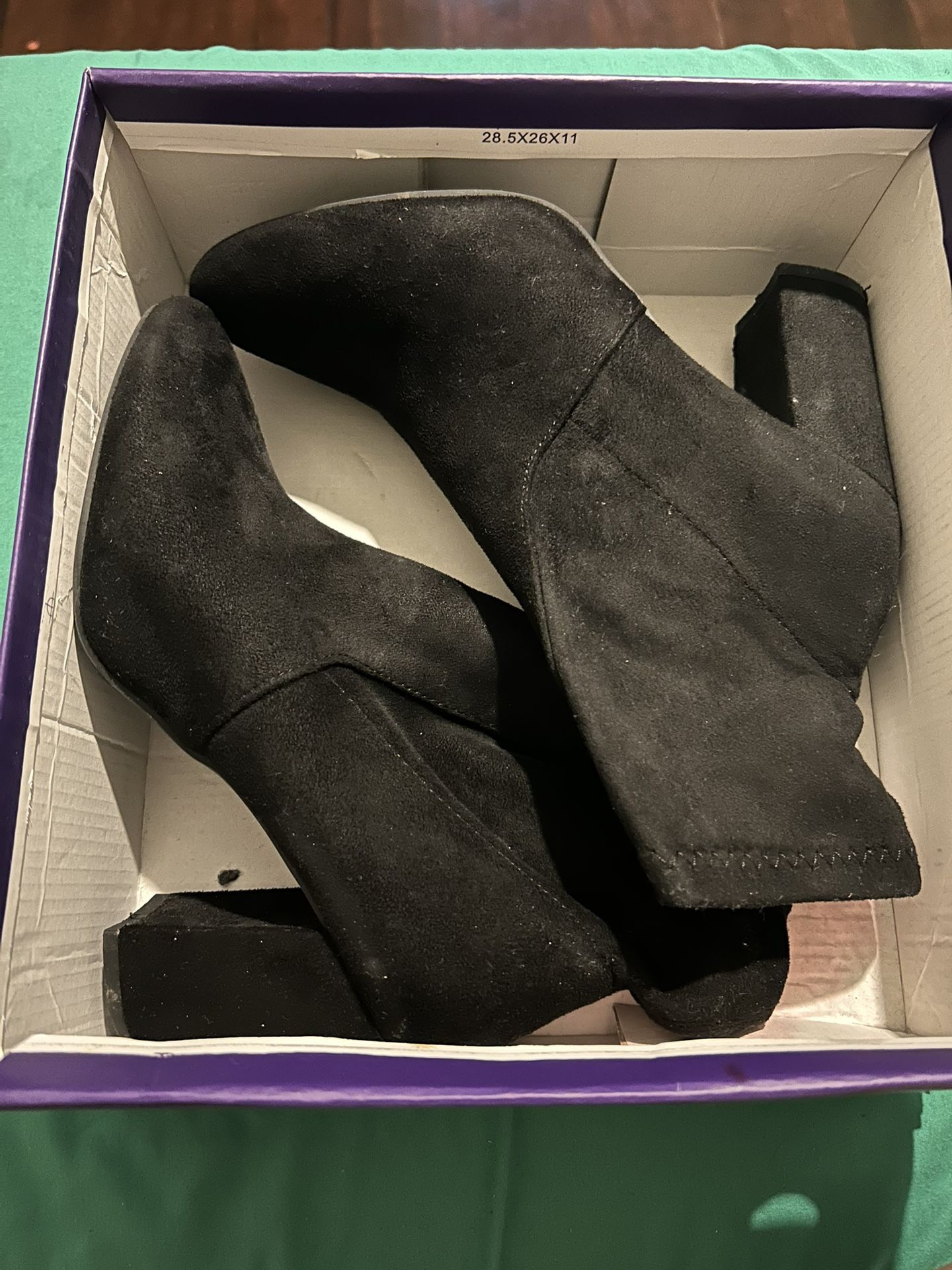 Size 8 women’s Black heeled booties Box included 20$ firm