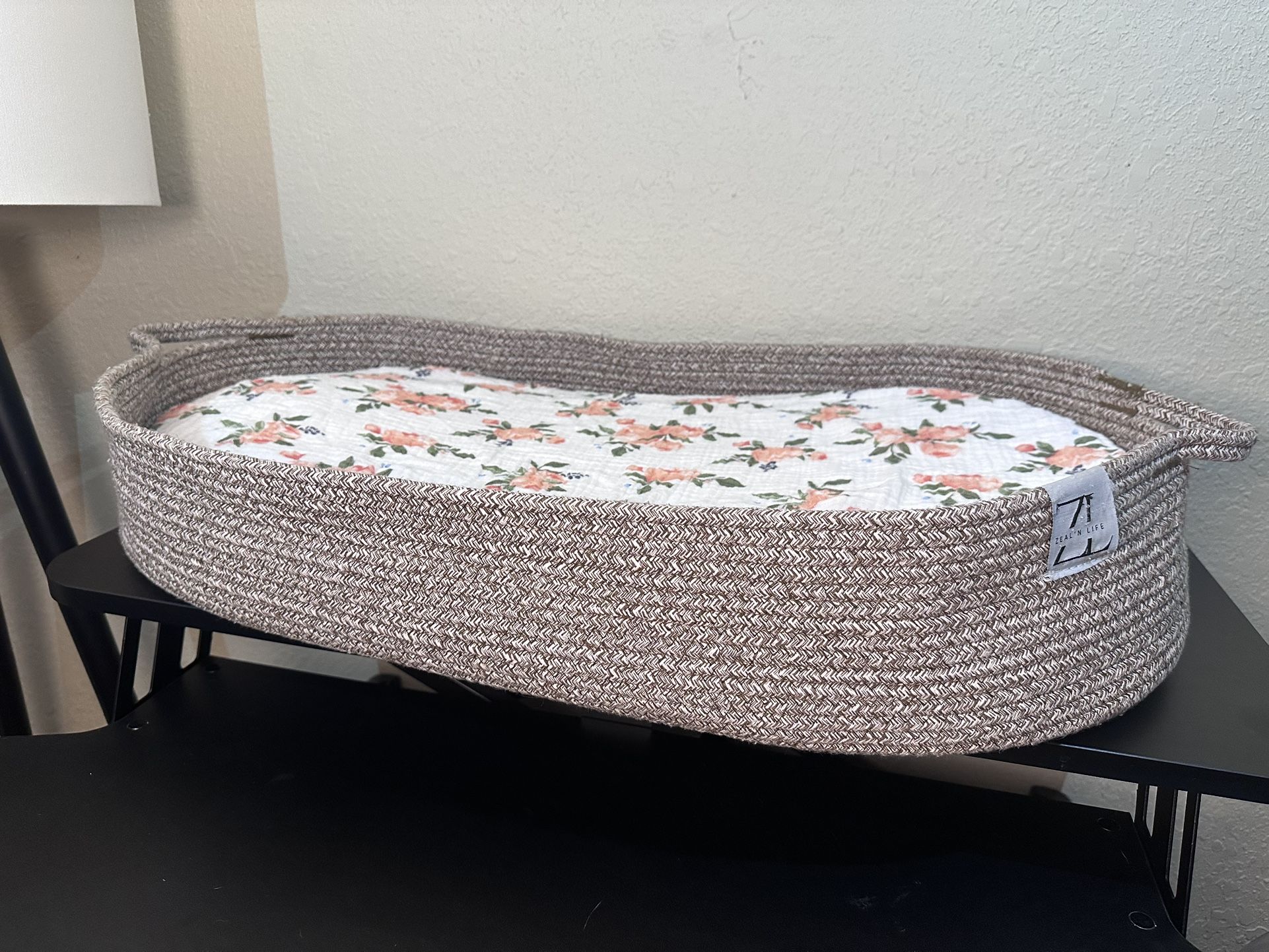 Zeal’n Life Woven Baby Changing Basket - Oval with Floral Quilted Pad, Clean & Boho Nursery asking $35 or best offer. Check out my other items everything is negotiable and everything must go💸
