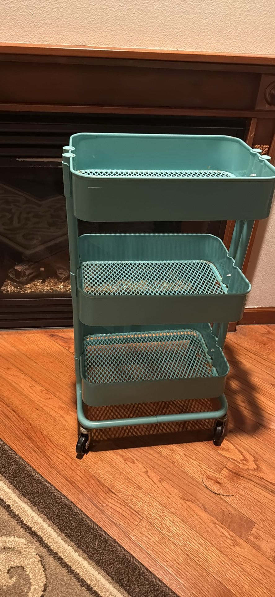 Teal 3-Tier Rolling Utility Cart