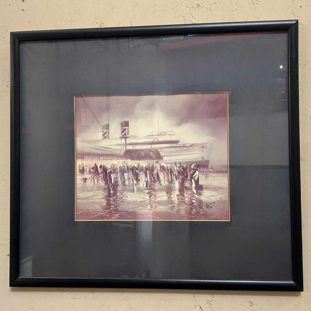 24.75″W x 21.75″H Available now at Design Consignment Gallery. See it in person and take it home today. Embossed Fain Chase harbor scene art print featuring a vintage ocean liner arrival rendered in the artist’s atmospheric, monochrome palette. Official Listing: Design Consignment Gallery. No third party checkout.