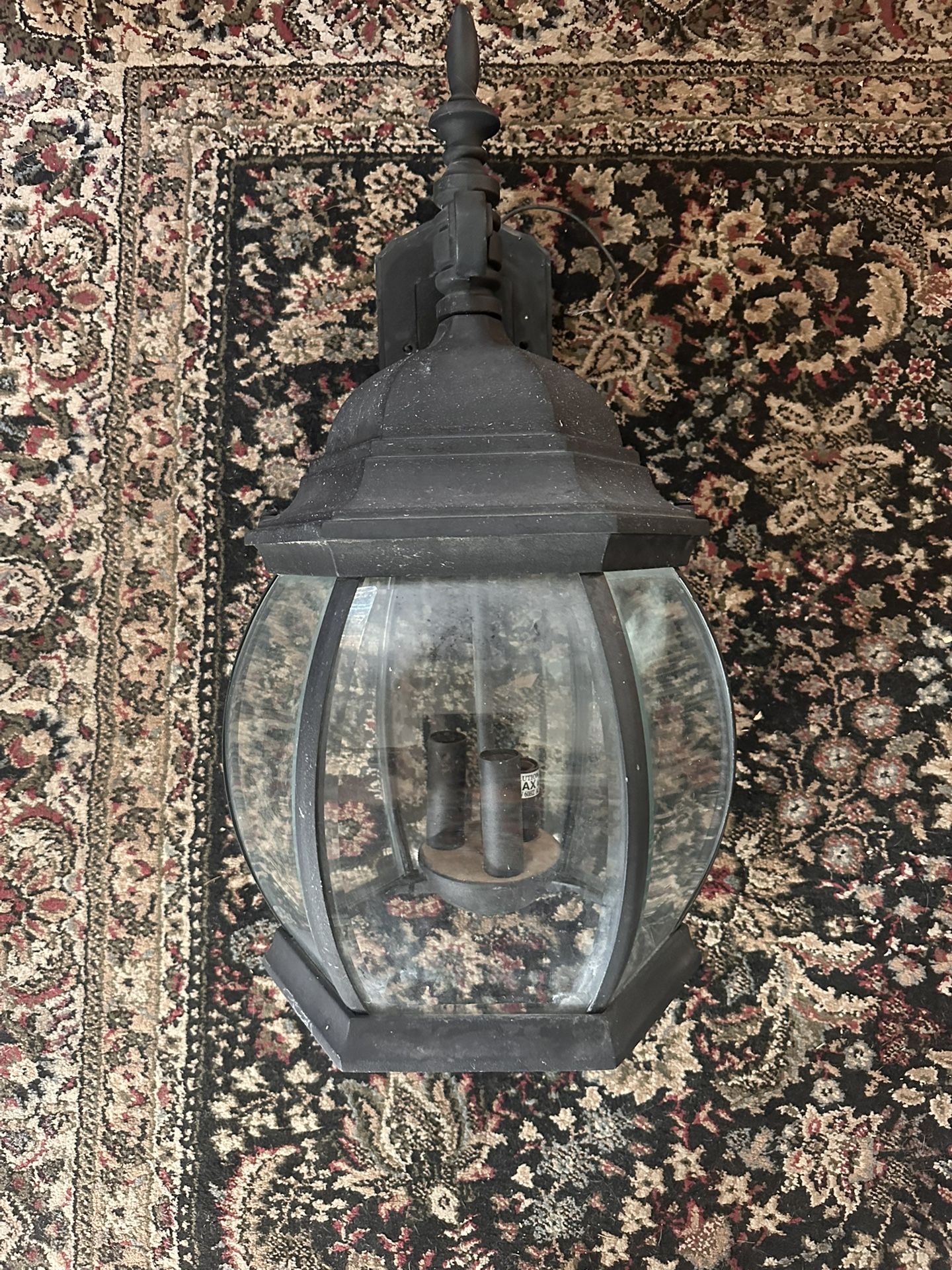 Metal / glass exterior light fixture Approximately 20” tall 9” width