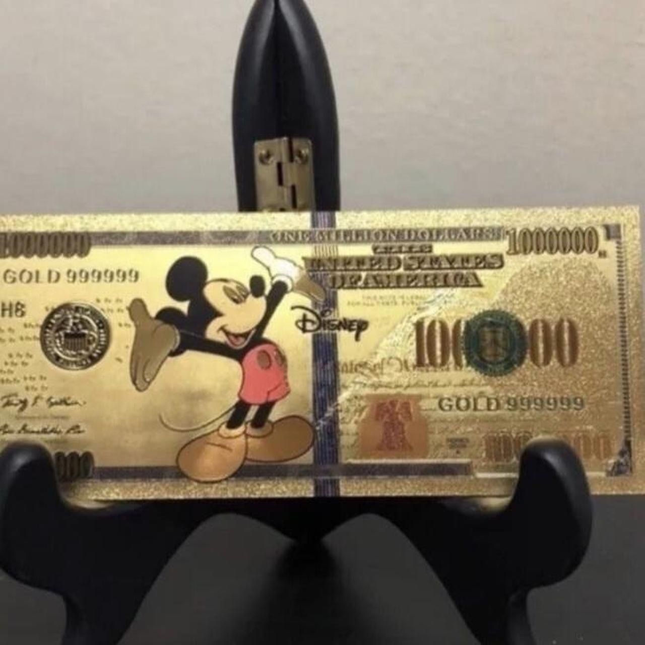 24k Gold Foil Plated Mickey Mouse Banknote (Not real currency) Amazing quality! Pictures do not do these justice, what you see in person is amazing! So much detail and shine in each one. You will be very happy with what you see. Great gift for any collector or Disney fan! Unique gift. Great stocking stuffer. Perfect for birthdays/baby showers/Christmas/Graduation and more! View my page for many more options and tons of characters and styles. Will bundle!