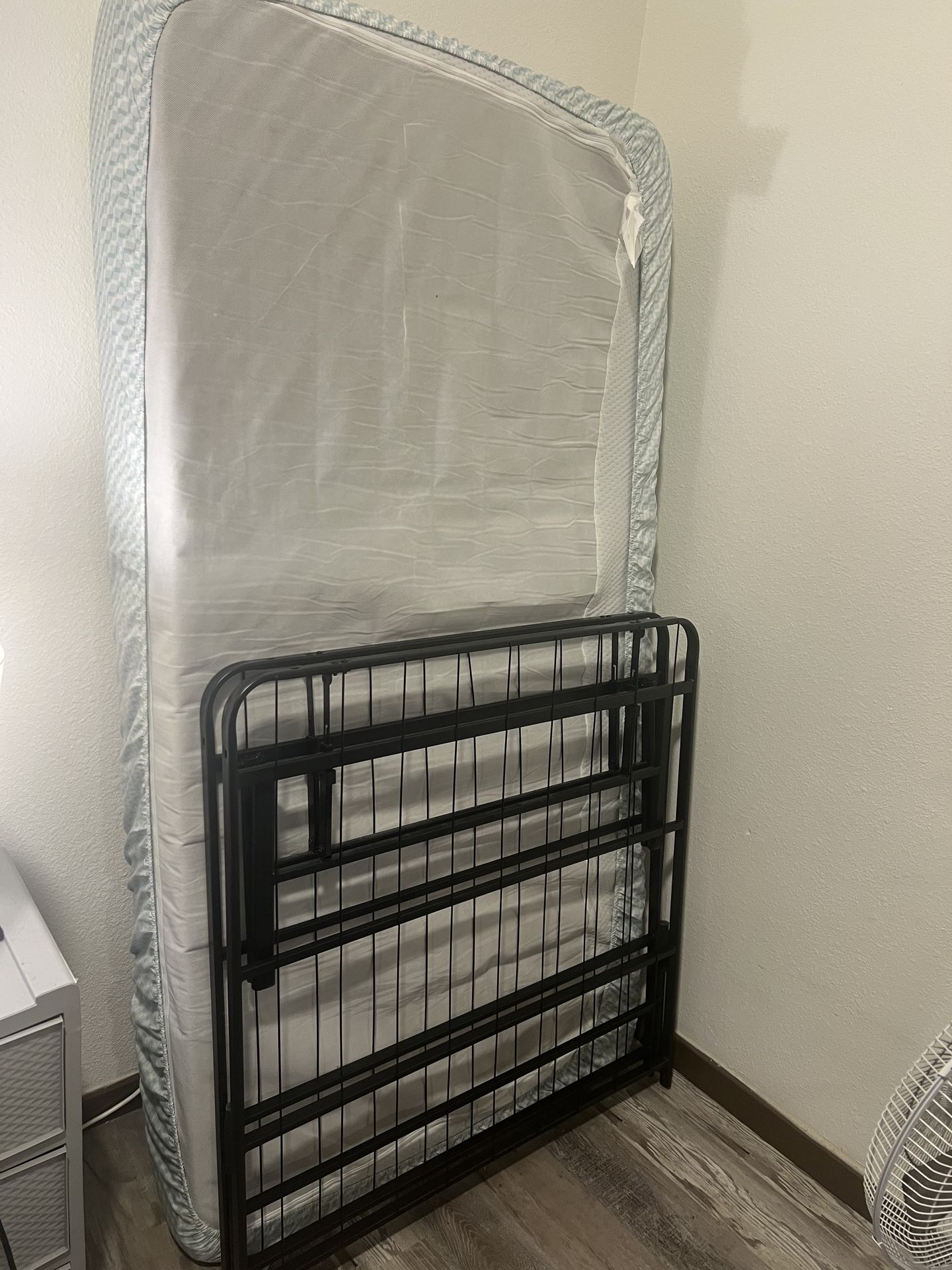Selling a twin-size memory foam mattress with a foldable metal bed frame. The mattress is comfortable and supportive, and the frame is sturdy and easy to fold for moving or storage. Great for a guest room, apartment, or small space. Both are in good condition and ready to use. Message me if interested! ๐๏ธ
