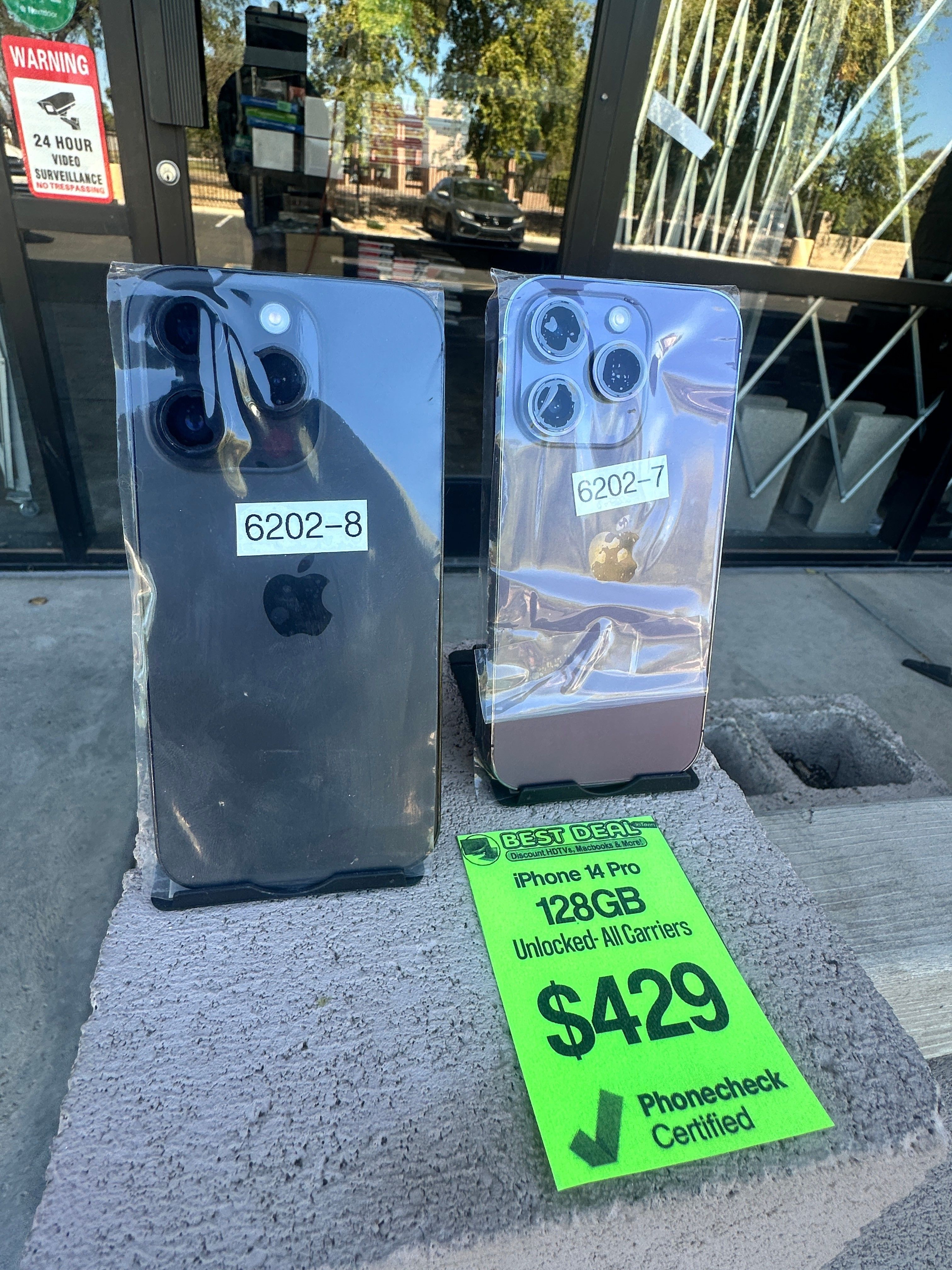 HUGE APPLE SALE iPhone 14 Pro Unlocked 128GB (Various Colors) PLEASE NOTE- We are Best Deal in Town, an independent TV store in Tempe, specializing in open box, overstock items from retail stores. Our inventory changes daily, hourly- we are really good at selling TVs in AZ at a great price, so this TV could be sold out! Or we could have 10 of them in stock! Feel free to contact us any time!!! Our website always stays up to date with live, current inventory!!! We give a 90-day warranty on everything we sell plus we offer an optional extended warranty. All prices are plus tax, we take cash, credit, debit and have financing options. We don’t negotiate price. If you are buying multiple pieces, I can get you a better deal. But if you want to negotiate prices, there are lots of great options for you to buy a TV, it just won’t be from us!!! iPhone 14 Pro Unlocked 128GB (Various Colors) Best Deal in Town is now carrying certified preowned iPhones. All of our stock is tested, inspected and certified to make sure it is in great, working order. No iCloud locks, no activation locks- plus we give a 90-day warranty on all of our iPhones! Inventory is always changing, so keep an eye on our website or stop by our store to check out our newest additions! ABOUT THIS ITEM All iPhone 14 Pro models have a haptic-touch capable 6.1" (diagonal) "Super Retina XDR display" with ProMotion (2556x1179, 460 ppi, 120Hz refresh rates) that occupies nearly the entire front of the device. It has four cameras. On the front -- tucked in the black pill-shaped hole dubbed "Dynamic Island" -- is a "TrueDepth" camera that in addition to supporting Face ID, takes 12 megapixel photos and shoots 4K video. The rear packs a "Pro camera system" with a 48 megapixel "Main" camera, a 12 megapixel "Ultra Wide" camera, and a 12 megapixel "Telephoto" camera. Compared to earlier iPhone models, the rear camera system in the iPhone 14 Pro provides a quad-pixel sensor for improved low-light capture and detail, a new "Photonic Engine" for improved computational photography, an "Action mode" for improved stability, and an improved "Cinematic mode" with a simulated depth effect at 4K (30 fps, 24 fps) and "ProRes" codec compatibility (1080p on the 128 GB configuration and 4K on higher capacity configurations). The iPhone 14 Pro uses a stainless steel case with flat sides and has a glass front and back. The front has a "Ceramic Shield" cover for durability and the back has an integrated "MagSafe" magnetic charging connection. It is splash, water, and dust-resistant to the IP68 standard (maximum depth of 6 meters up to 30 minutes). It has four color options -- dark "Deep Purple," Silver, Gold, and "Space Black." Internally, the iPhone 14 Pro is powered by a 3.5 GHz "Apple A16 Bionic" processor with six cores -- two performance cores and four efficiency cores -- as well as a 5-core GPU and a 16-core Neural Engine. It has 6 GB of RAM and 128 GB, 256 GB, 512 GB, or 1 TB of flash storage. It also supports 802.11ax Wi-Fi 6 with 2x2 MIMO, 5G wireless, Bluetooth 5.3, Ultra Wideband "for spatial awareness," NFC for Apple Pay, "Express Cards with power reserve" for compatible transit systems, Crash Detection, Emergency SOS via satellite, and support for dual eSIMs (it does not support hardware SIM cards at all). Apple estimates that the iPhone 14 Pro provides "up to" 75 hours of audio playback, 23 hours of video playback, and 20 hours of streamed video playback. 🏷️ YES – WE ARE A STORE! INVENTORY CHANGES DAILY! 🔥 Tons of TVs & Apple Products In Stock! 🔥 Check www.bestdealaz.com for live, up-to-date inventory — what you see online is what we have right now. 💬 Message us directly or use the live chat feature on our website for fast answers from our team! 📍 VISIT US AT OUR NEW LOCATION: Best Deal in Town – Arizona’s Leader in Discount Electronics 5801 S. McClintock Dr., Tempe, AZ 85283 (Between Baseline & Guadalupe – just south of Gaicki Park) 🕙 Open 7 Days a Week: Mon–Sat: 10am–7pm | Sun: 10am–6pm 🛒 WHAT WE SELL: ✅ TVs – Open box, overstock, & online returns from major retailers (NO broken items) ✅ Apple Products – Corporate lease returns & open box (MacBooks, iPads, iPhones) ✅ Everything is tested, inspected, and comes with a 90-Day Warranty ✅ Optional extended warranties available 💳 PAYMENT OPTIONS: Cash, credit, or debit (sorry, no checks) All prices are +8.1% sales tax No credit? No problem! Lease-to-own options through Progressive Leasing Good credit? Apply in-store for the Best Deal in Town Credit Card, powered by Synchrony ⚠️ PLEASE NOTE: WE ARE A STORE, not a private seller Inventory changes fast – we may be sold out or have it cheaper For the most accurate info, visit www.bestdealaz.com Best Deal in Town Tempe, Electronics store Tempe, Discount electronics Tempe, Used TVs Tempe, Phoenix Mesa Chandler Scottsdale Glendale Gilbert Tempe Peoria Surprise Avondale Goodyear Buckeye Apache Junction (partially in Pinal County, partly in Maricopa) El