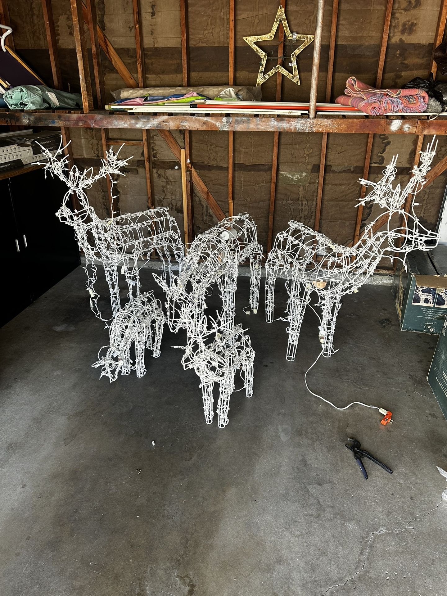 2 Animated Standing Deer lighted sculptures 2 mini deer lighted sculptures Powdered coated collapsing frame for easy assembly and storage and all of them have the original box and work like new Asking $80 for the set. OBO???