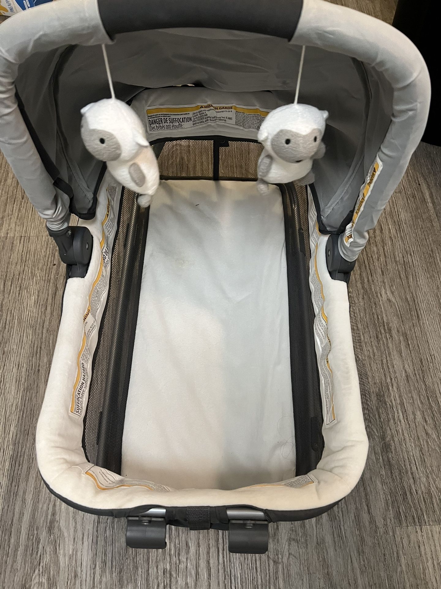 Portable bassinet that rocks and snaps into a pack n play - used and in good condition