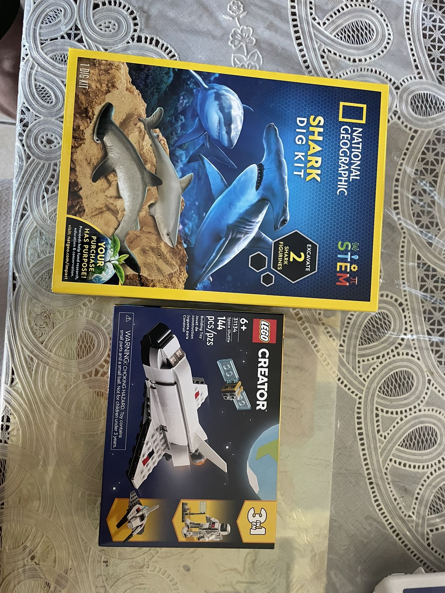 National Geographic shark dig kit and a legos creator. Both are new $10 for both