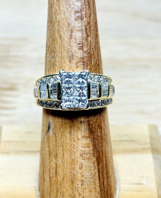 14k Yellow Gold Diamond Cluster Yellow Gold Ring 7 sz 9.1g Princess Cut 3 Carat Natural Diamonds