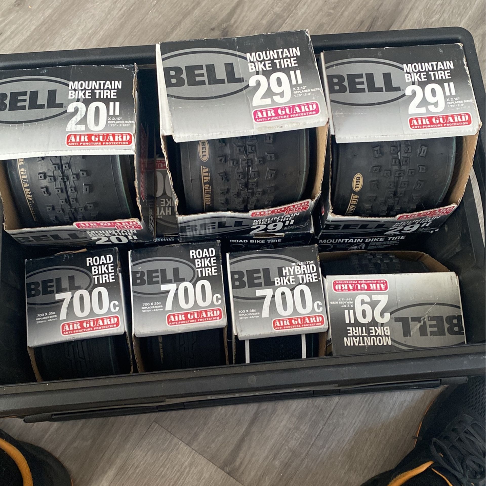 Different sizes brand Bell (2) 20” (2)29” (6)700c $15 each if you get multiple $10