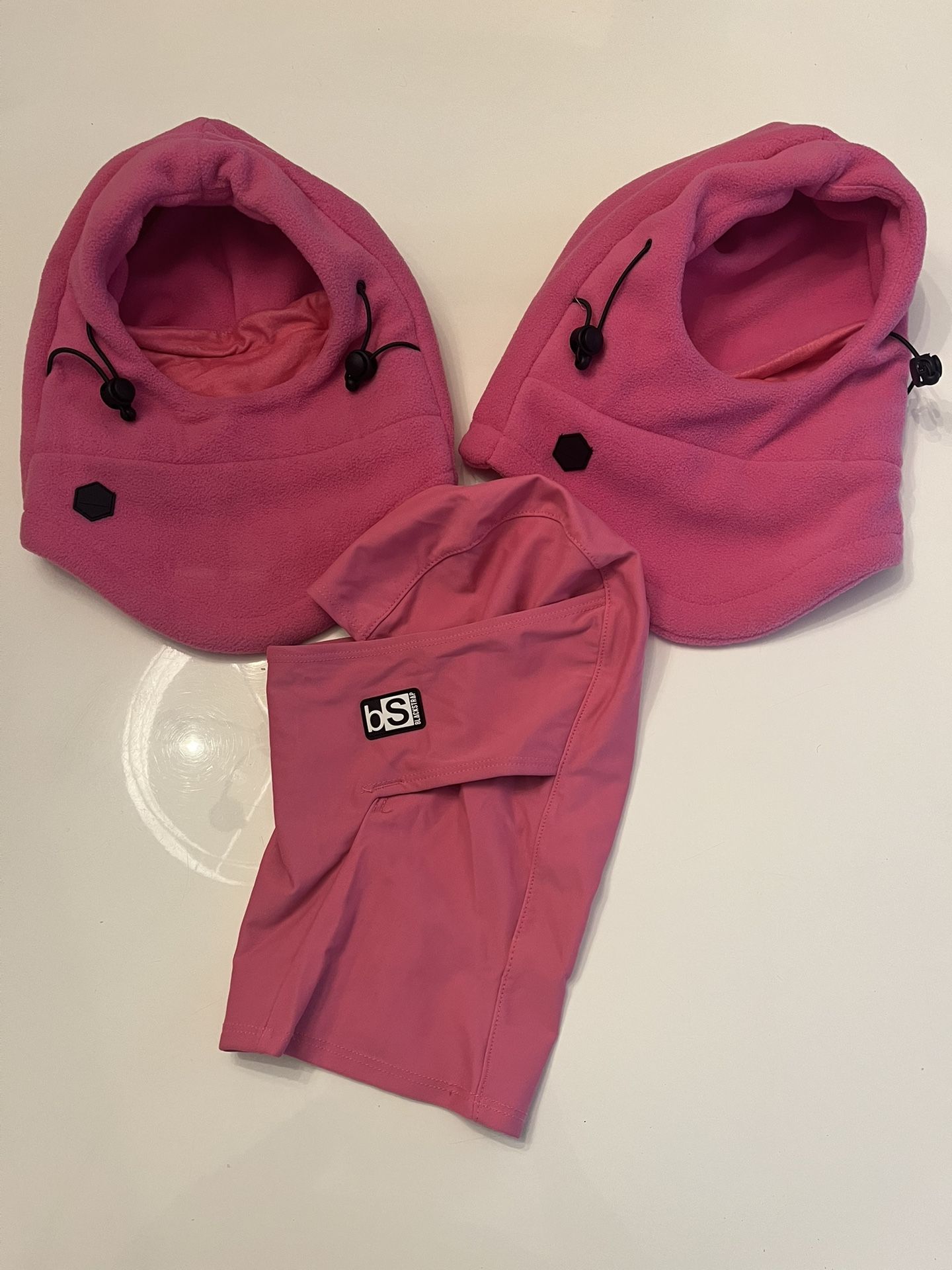 3 girls balaclavas- 1 pink BlackStrap brand and 2 fleece Toughoutfitter brand. Girls size 4-10