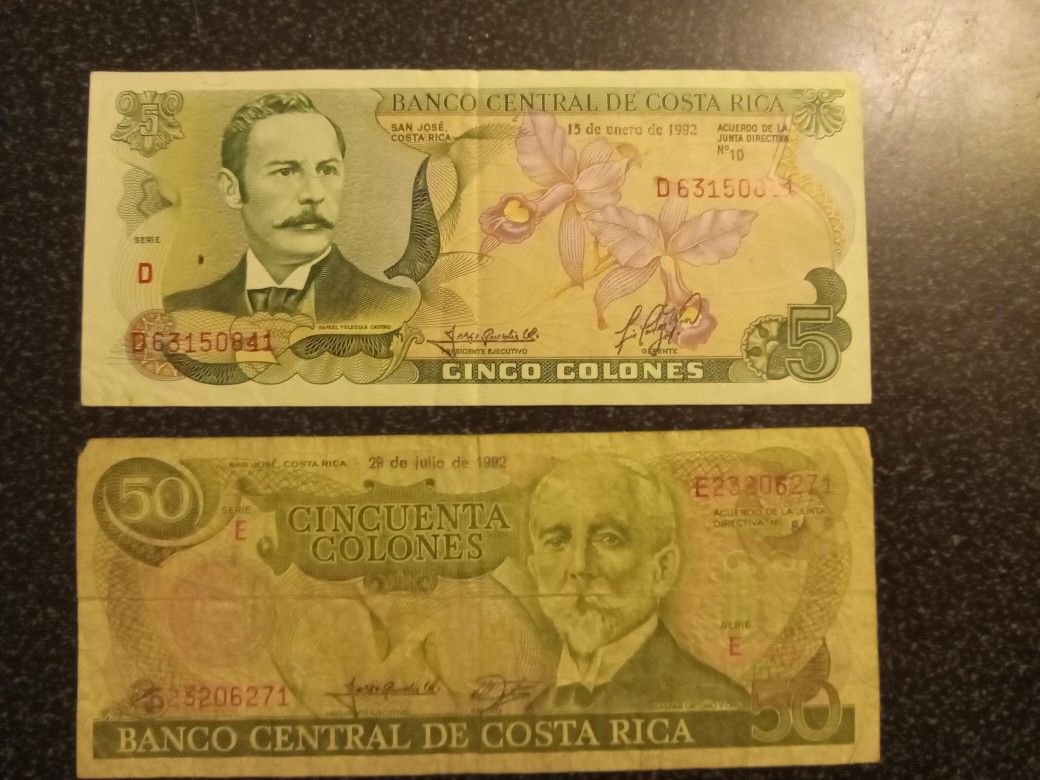 Banco Central de Costa Rica Cinco colones: $5 cash Cincuenta colones: $ 20 cash
