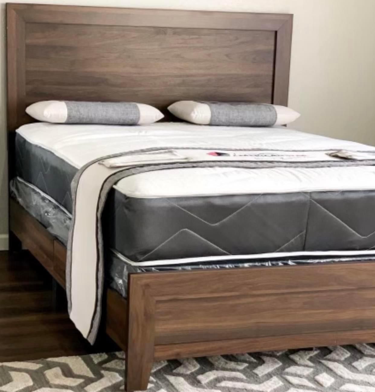 Brand New King Size Brown Wooden Bed Frame With New Mattress Set/Fast Delivery