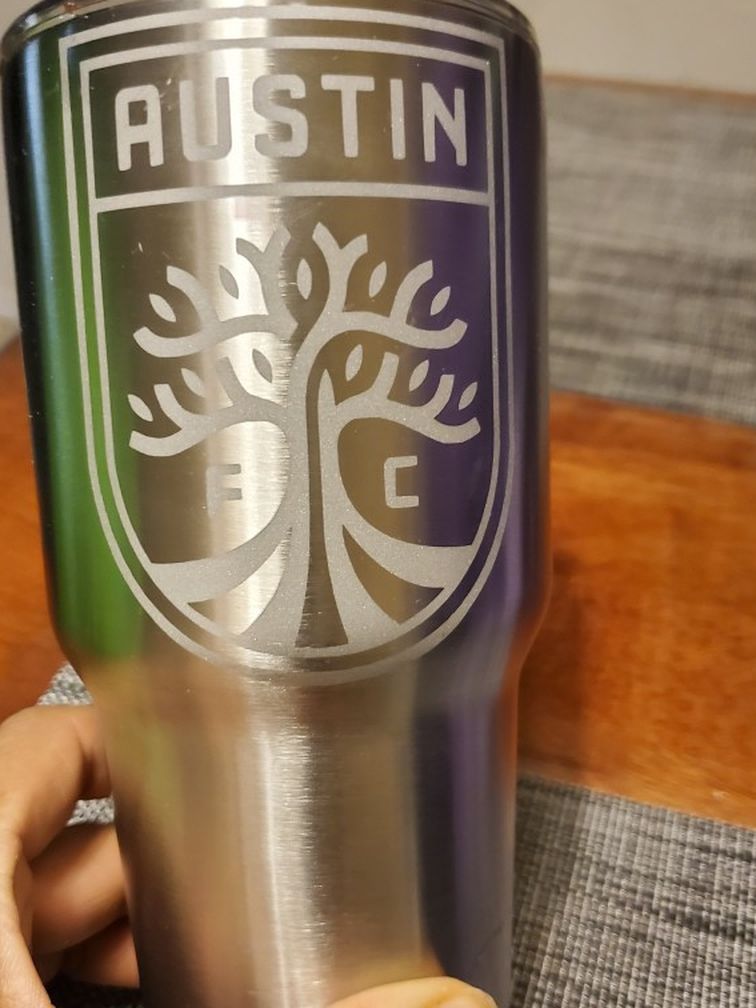 Sandblasted tumbler with the AUSTIN F.C. logo