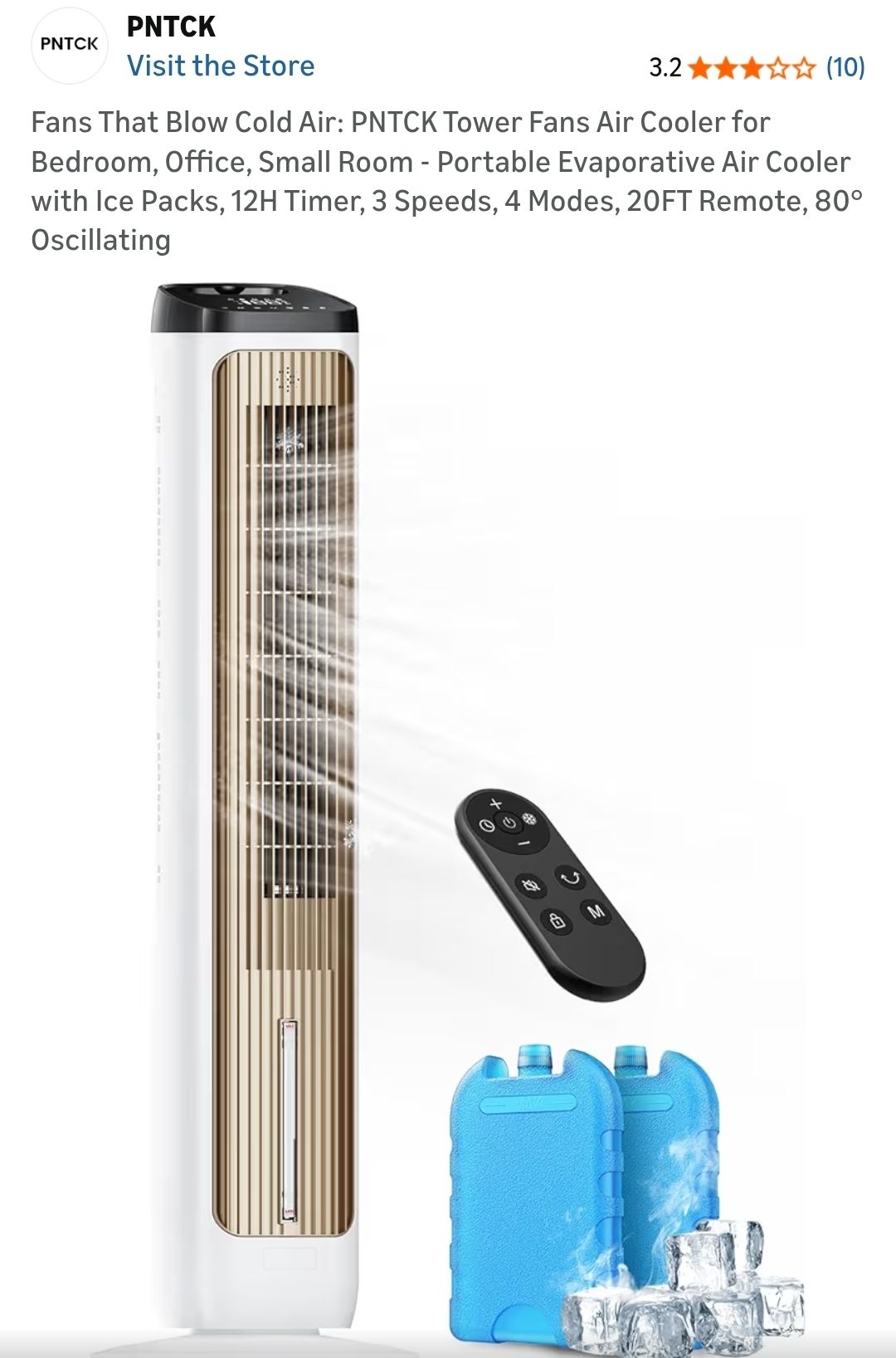 Brand New Factory Sealed in the Box 📦 Retails around $100 PNTCK - Fans That Blow Cold Air: PNTCK Tower Fans Air Cooler for Bedroom, Office, Small Room - Portable Evaporative Air Cooler with Ice Packs, 12H Timer, 3 Speeds, 4 Modes, 20FT Remote, 80° Oscillating