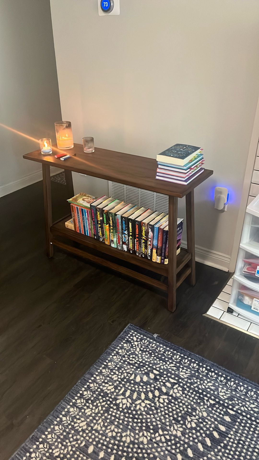 Wood console table in a weathered brown finish, Threshold brand from Target. 42” long x 14” wide x 30” high. Used - purchased December 2024.