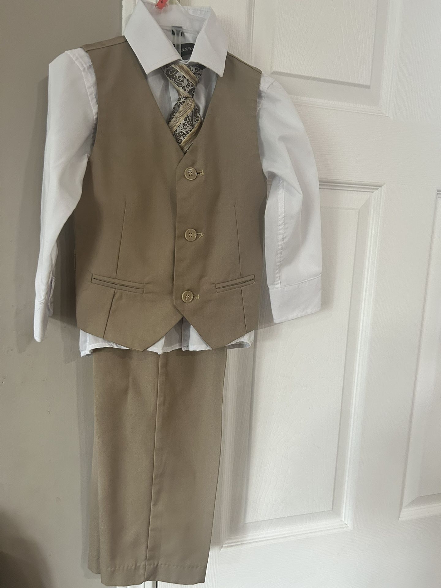 BOY’S TAN SUIT 4 PIECES SIZE 4T GOOD CONDITION