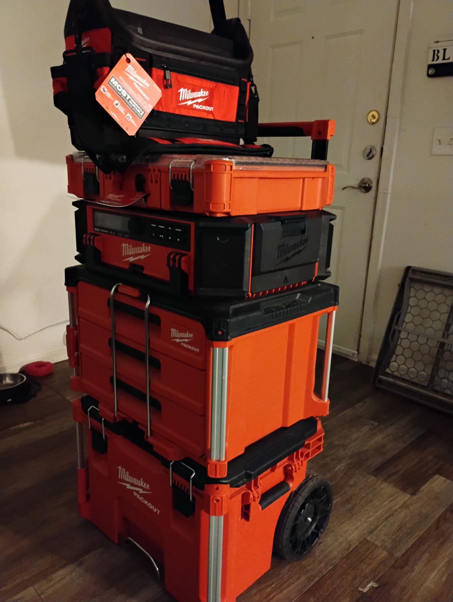 $700 for all. - tool bag/ structured tote, radio with charger, 3 drawer tool box, organizer box, and rolling tool box. Everything is brand new. Selling together