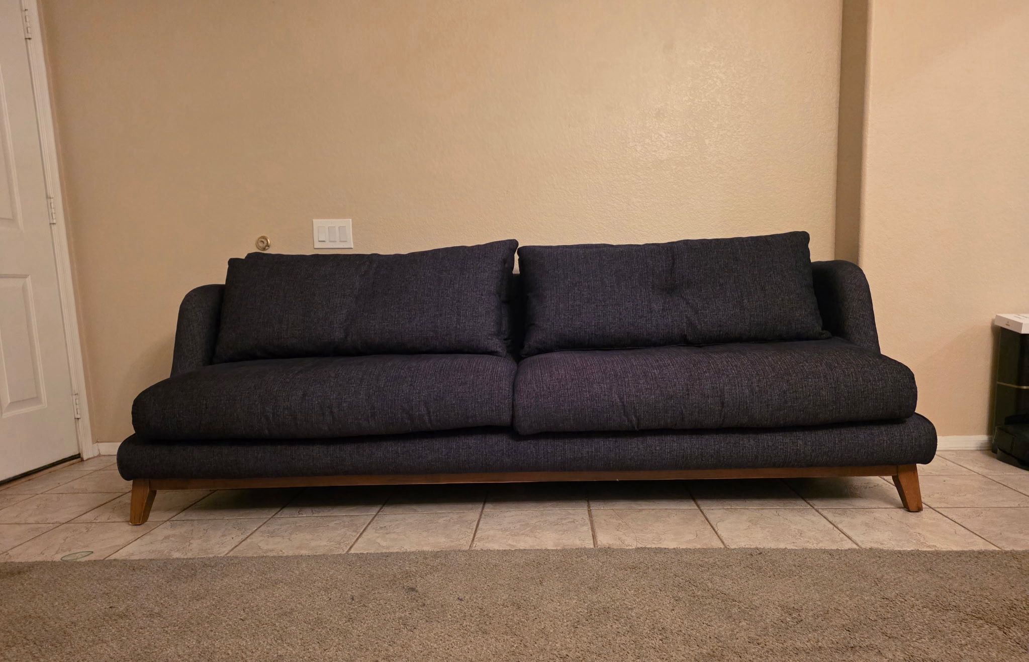 used grey couch, normal wear - no rips/stains Width 95 1/2"x Depth 40"x Height 34" • Brand: Classic Home • Collection: Laguna by Classic Home