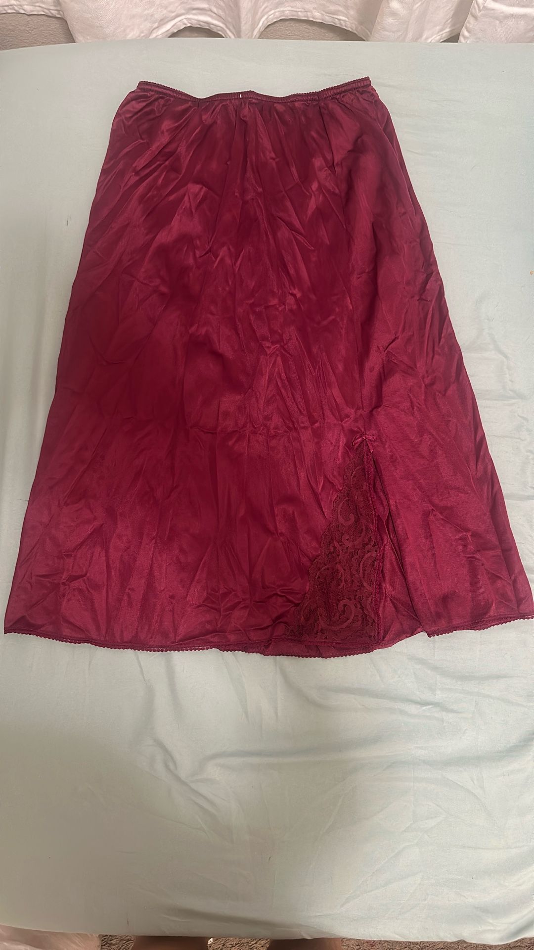 Burgundy Vintage JCPENNEY Silky Detailed Coquette Lace-Trim Ligerie Skirt