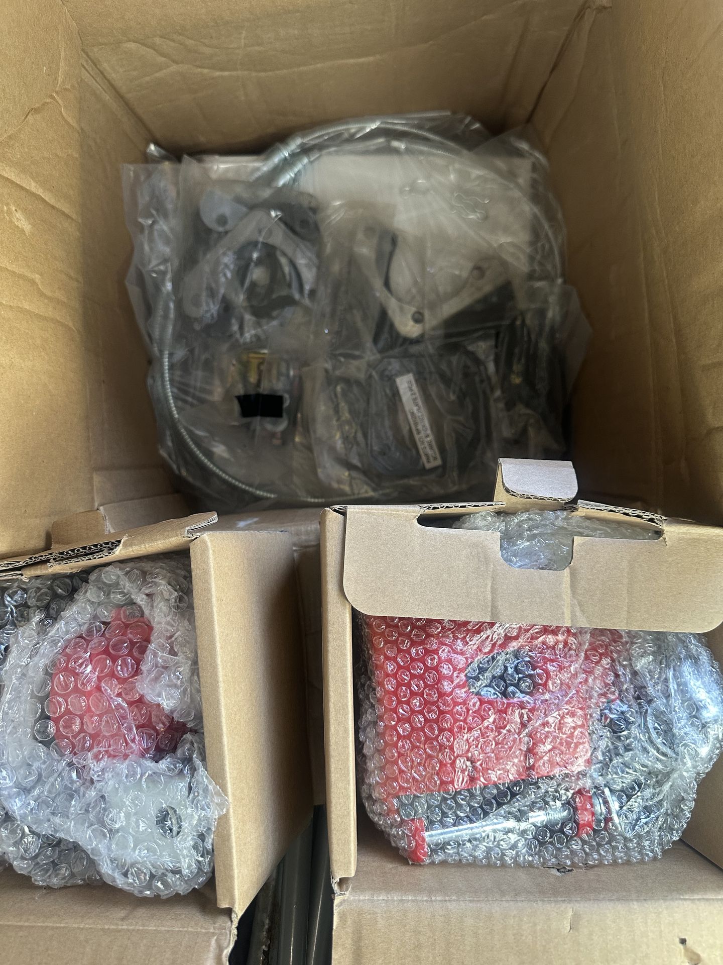 Brand new in the box rear disc brake conversion kit for cars 64 to 72 A body Red calipers Brake pads 11 inch slaughter rotors $500 FIRM