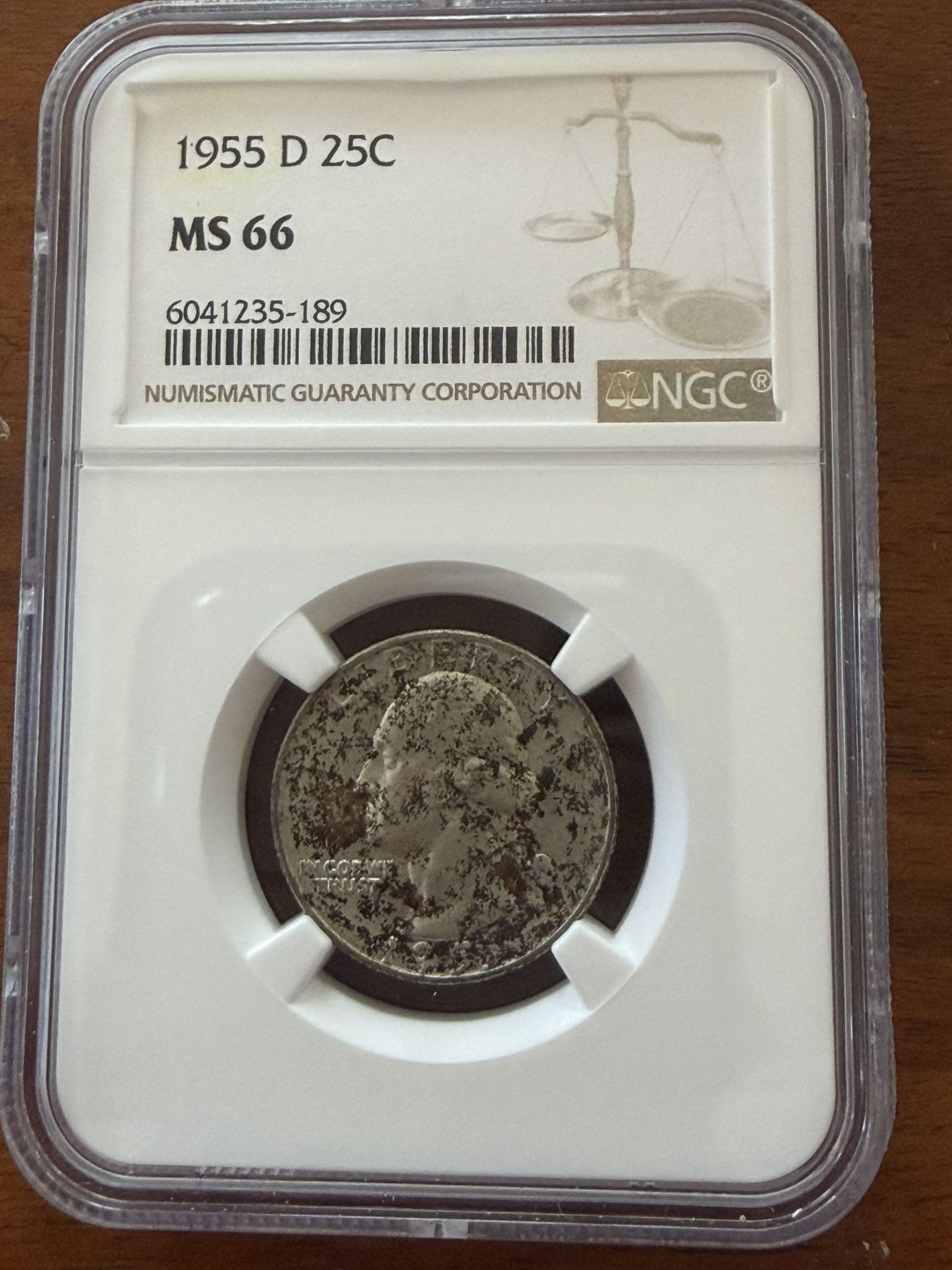 This is a 1955 D Washington Silver Quarter graded MS 66 by NGC. The last pic shows this coin on https://offerup.com/redirect/?o=TkdDY29pbi5jb20vdmVyaWZ5