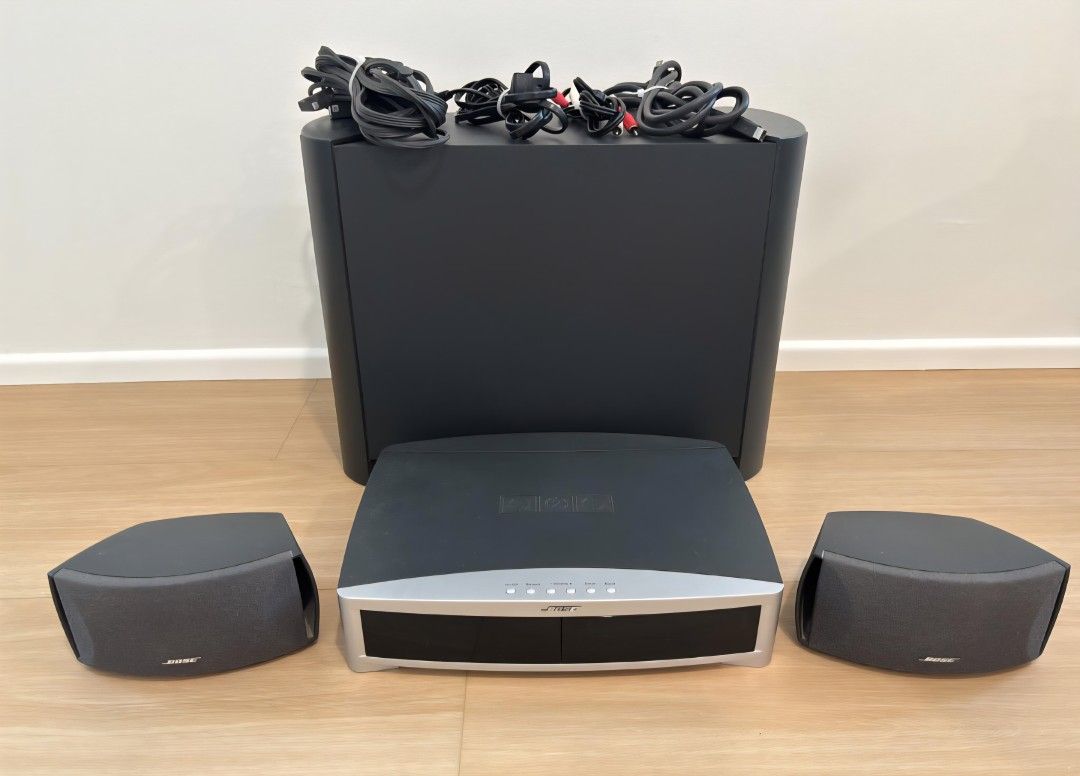 Great condition, BOSE GS Model AV3-2-1 II DVD/CD player, AM/FM Tuner 2.1-Channel Home Entertainment Speaker System Media Center With Remote,comes with all cords ,and original owners guide, It features an integrated DVD/CD player, AM/FM tuner, and Videostage 5 decoding, but lacks HDMI output, relying instead on component or composite video connections. Key Features and Specifications Audio Quality: Uses TrueSpace digital processing to simulate surround sound from two speakers. Components: Includes a small media center, two Gemstone speakers, and a hideaway Acoustimass bass module. Connections: Features digital optical/coaxial inputs, RCA analog inputs, and supports progressive scan DVD playback. Remote: Comes with a infrared remote control. Compatibility: Plays DVD-Video, CD, CD-R/RW, and MP3 CDs.Asking $400 firm on price.