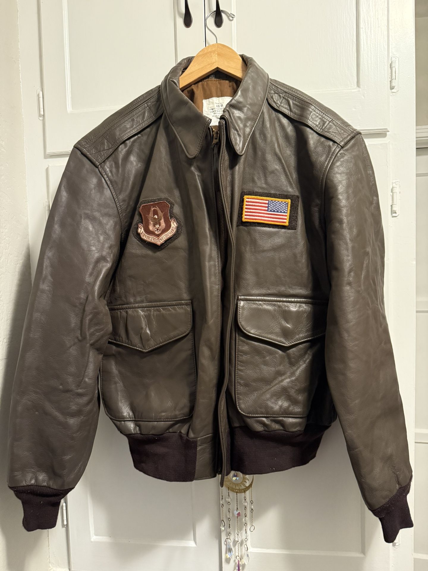 This military-issue type jacket was designed and approved by the U.S. Air Force and made in the United States under a government . DSCP The jacket shell is made of premium hand-stitched Leather. The jacket features dual knit cuffs and waist band along with a cotton-blend interior lining. In addition, the jacket has a U.S. Air Force-regulation snap down leather lined collar, shoulder epaulets, two snap down pockets, a full-length brass zippered opening with integrated wind flap, and brass grommets under each armpit for ventilation.