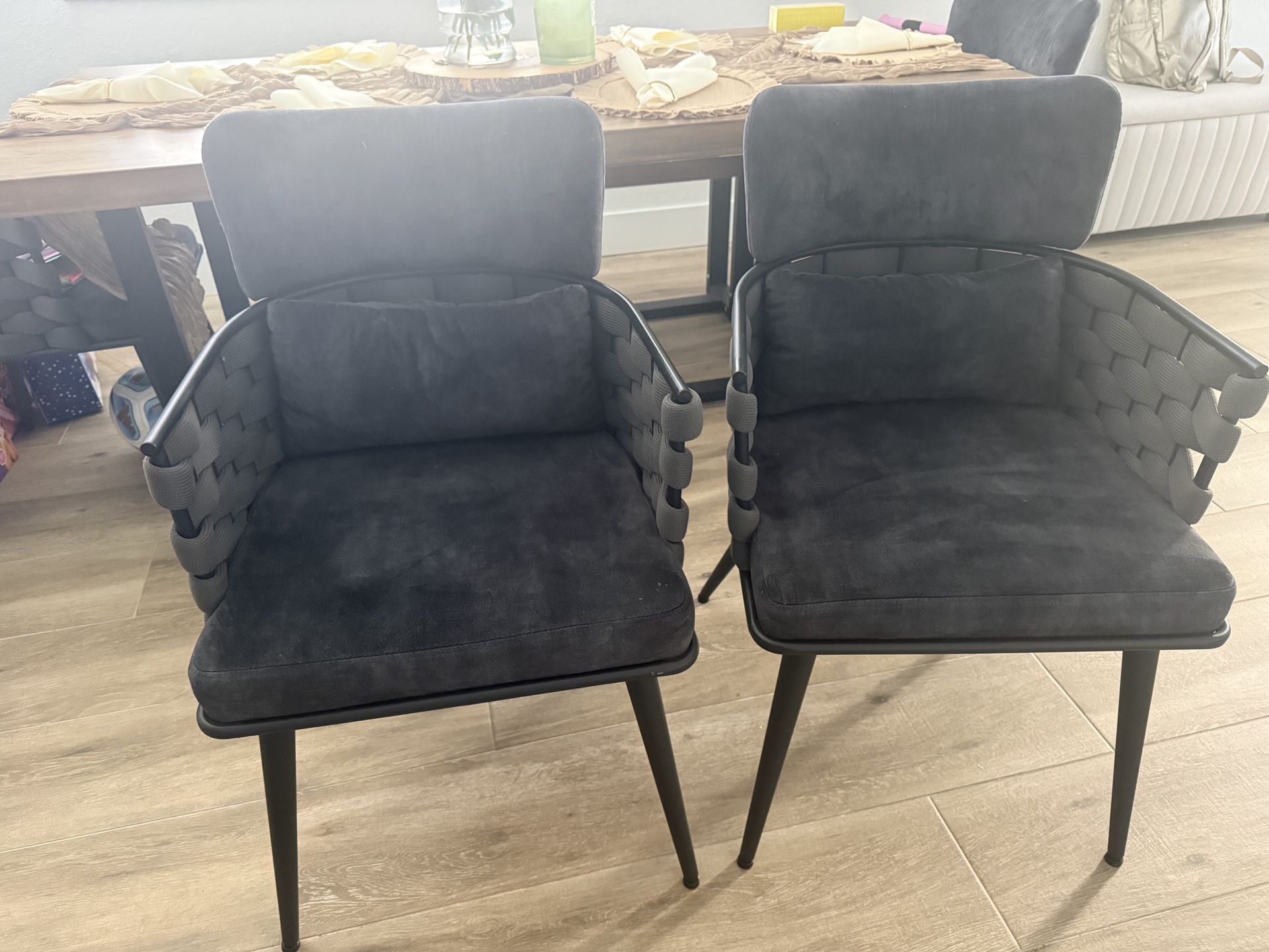 4 modern velvet dark gray chairs