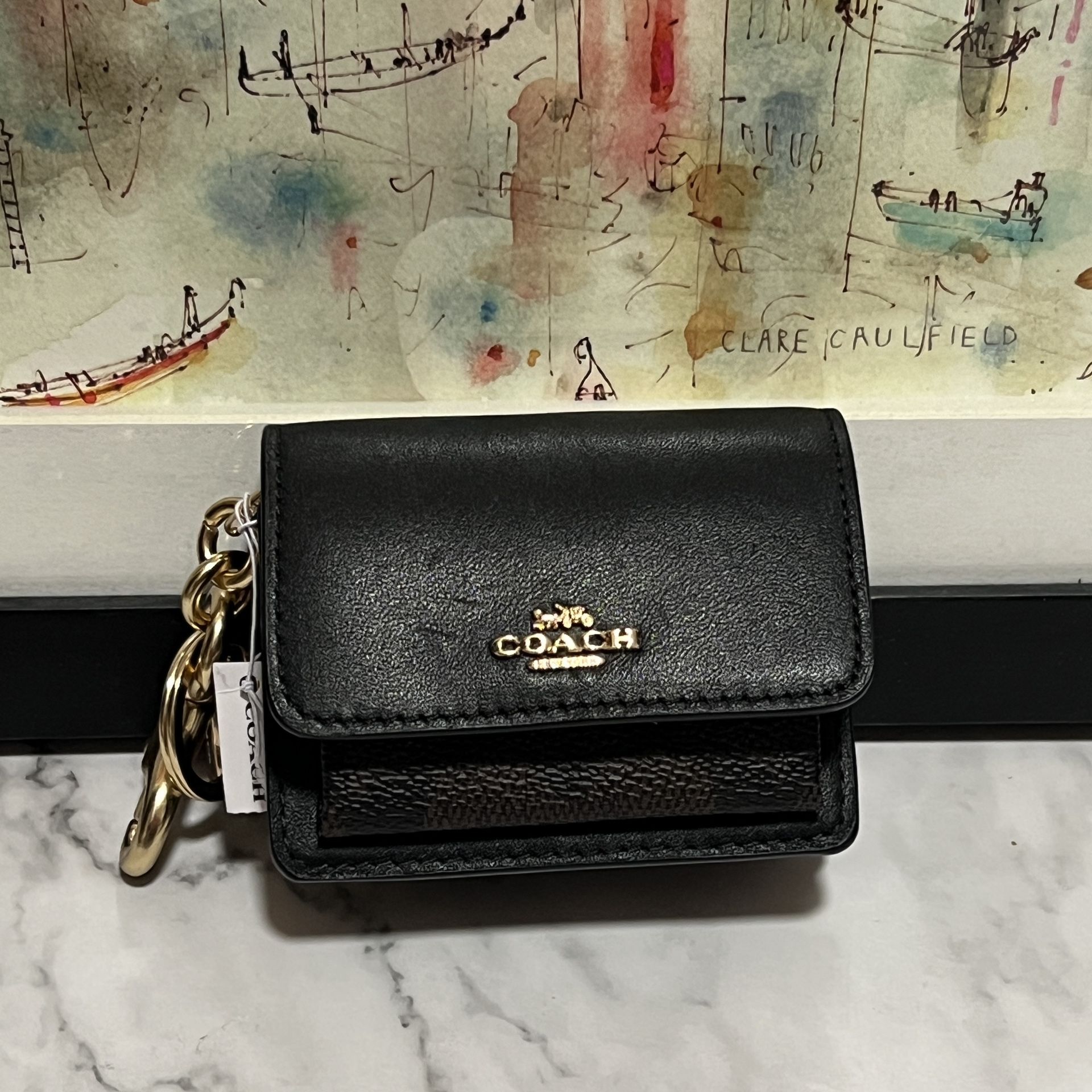 NWT Coach Mini Klare Bag Charm In Signature Canvas Black Brown
