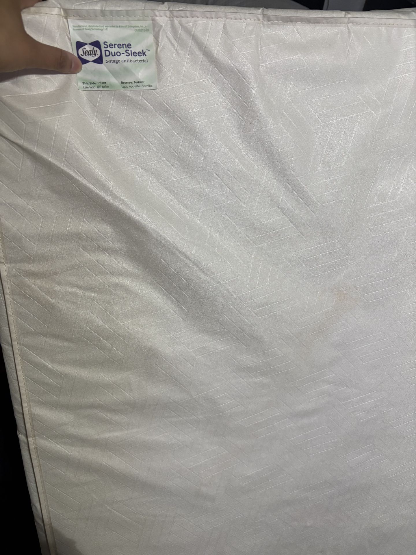 Used crib mattress it has a few little rips from the crib spring. Make me and offer.