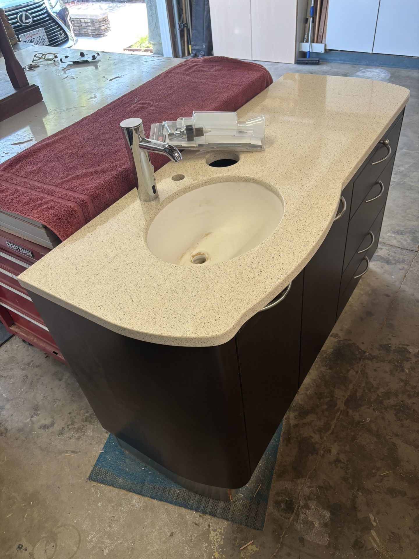 Left and right 20” and 22” side cabinets., 55” x 32”. New old stock. Includes splash and sink accessories.