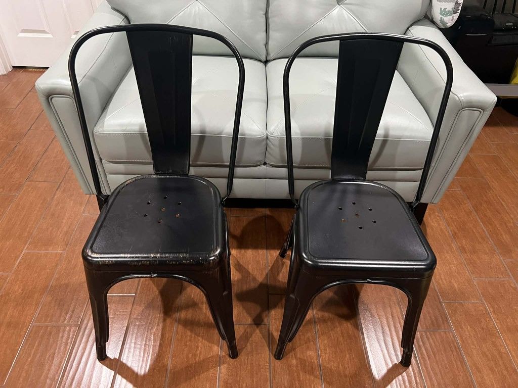 LIKE NEW 2PK Furniture Commercial Grade Black Antique Gold Metal Indoor Outdoor Stackable Chair